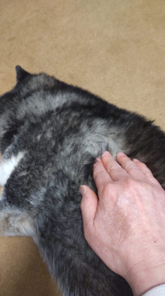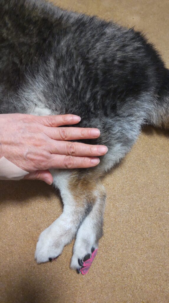 後足と同じように、寝ているときに実施していますが、おなか側を実施するときは、少しやりにくいので、うまくできているかは、わかりません。