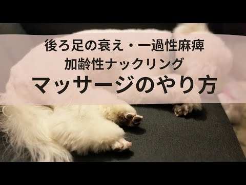 「後ろ足が衰えてきたシニア犬、ヘルニアなどの後遺症で一過性の麻痺がある犬、加齢によるナックリングがある犬のための、指の屈曲に関わる筋肉と腱にアプローチするマッサージのやり方です。」